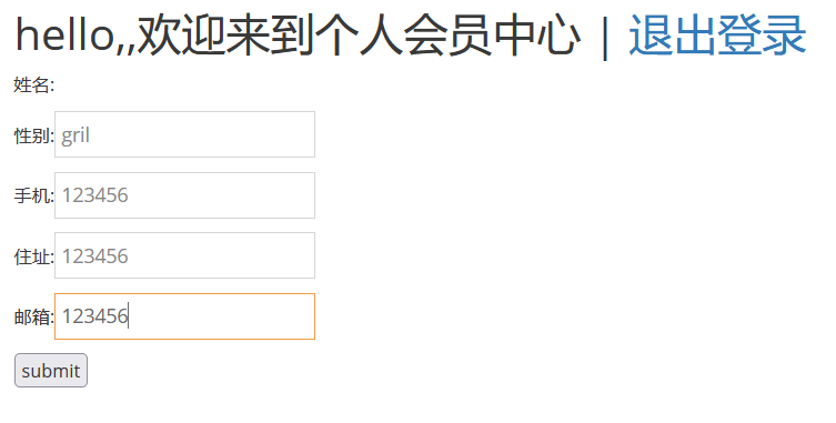 3.修改后的个人信息如图,先打开burpsuite进行拦截,再点击submit