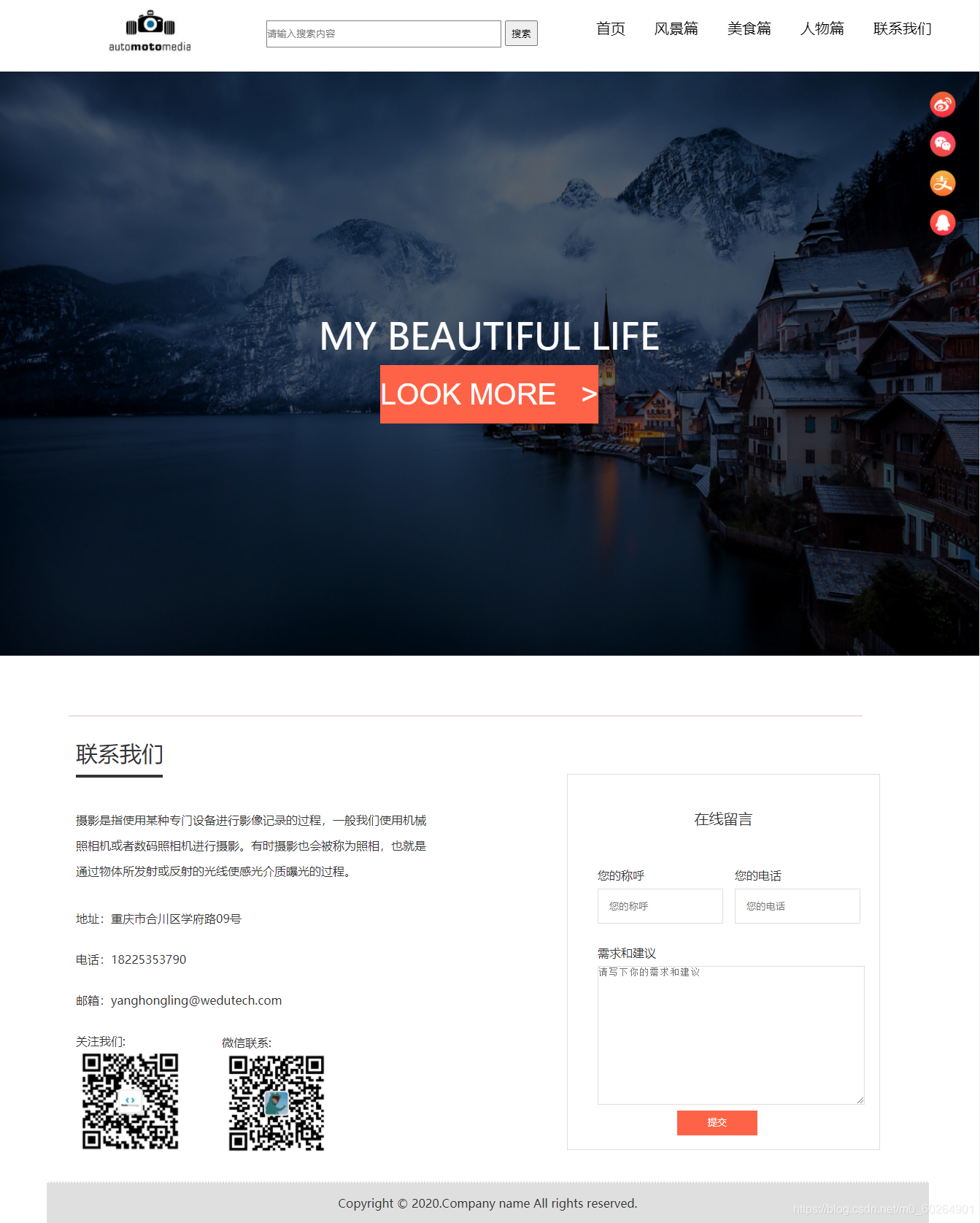 由于这三部分是在一栏上的,所以为了达到这种效果,我们会用浮动效果.