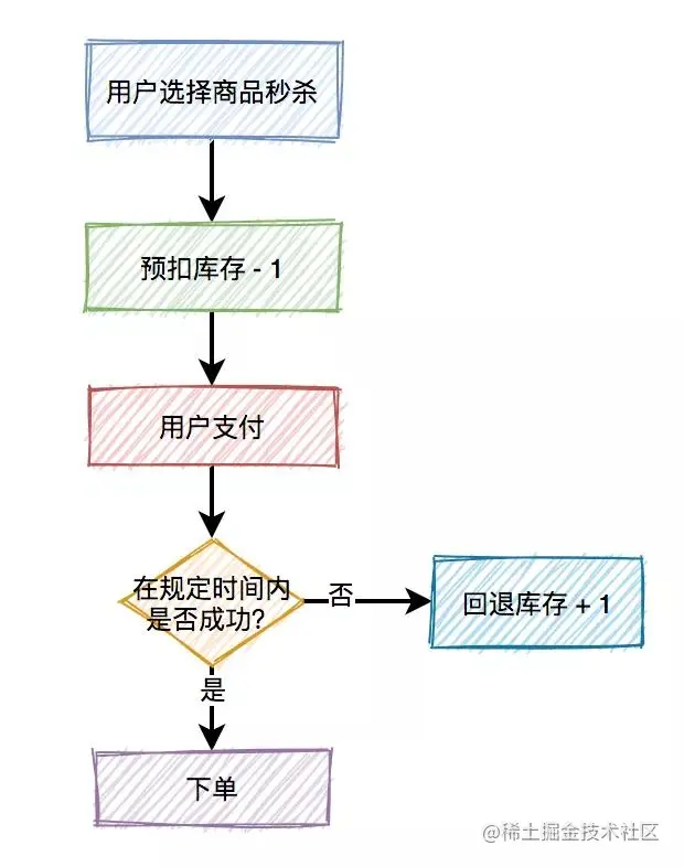 真正的秒杀商品的场景,不是说扣完库存,就完事了,如果用户在一段时间内,还没完成支付,扣减的库存是要加回去的。