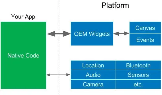 据称Dart语言可以编译成原生代码,直接跟原生通信,其原理模型图如下: