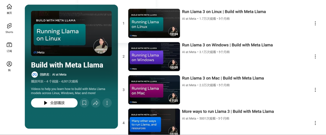 Llama 3 构建教程视频,帮助用户在 Linux、Windows 和 Mac 等平台上入门运行 Llama 3 模型。