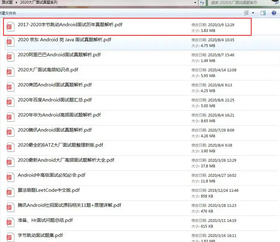PS:之前因为秋招收集的二十套一二线互联网公司Android面试真题 (含BAT、小米、华为、美团、滴滴)和我自己整理Android复习笔记(包含Android基础知识点、Android扩展知识点、Android源码解析、设计模式汇总、Gradle知识点、常见算法题汇总。)