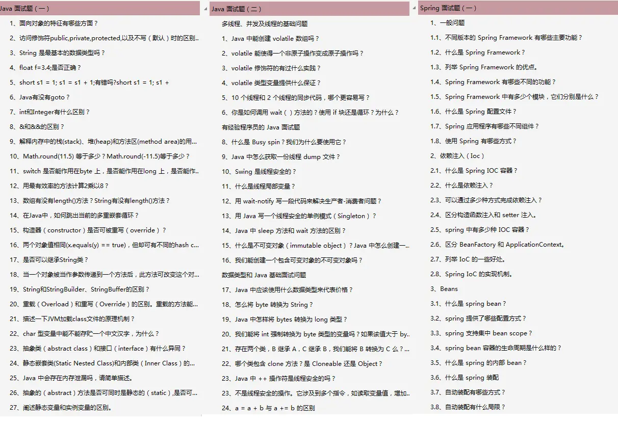 Java面试题合集: