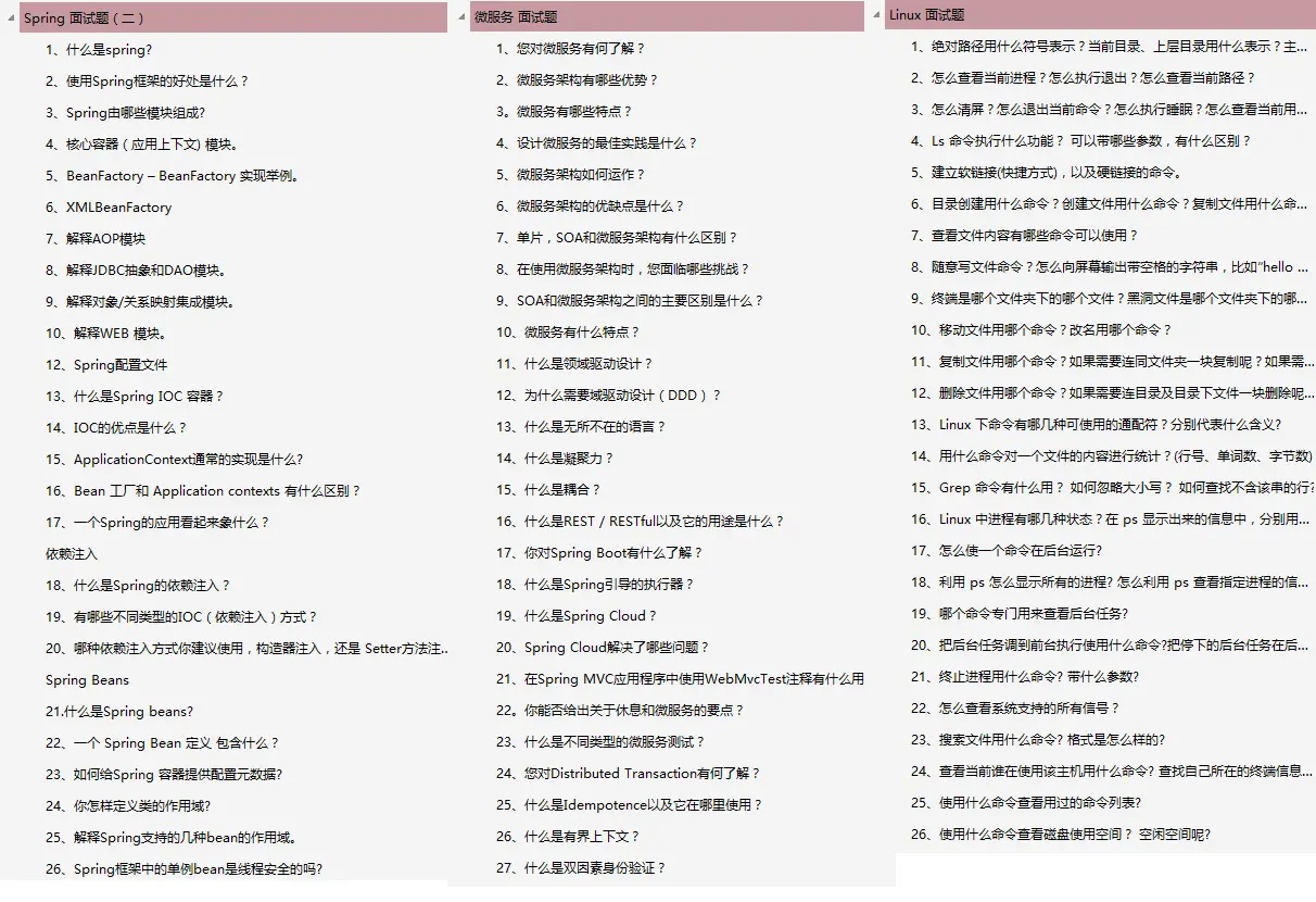 Spring 26 题+ 微服务 27题+ Linux 45题: