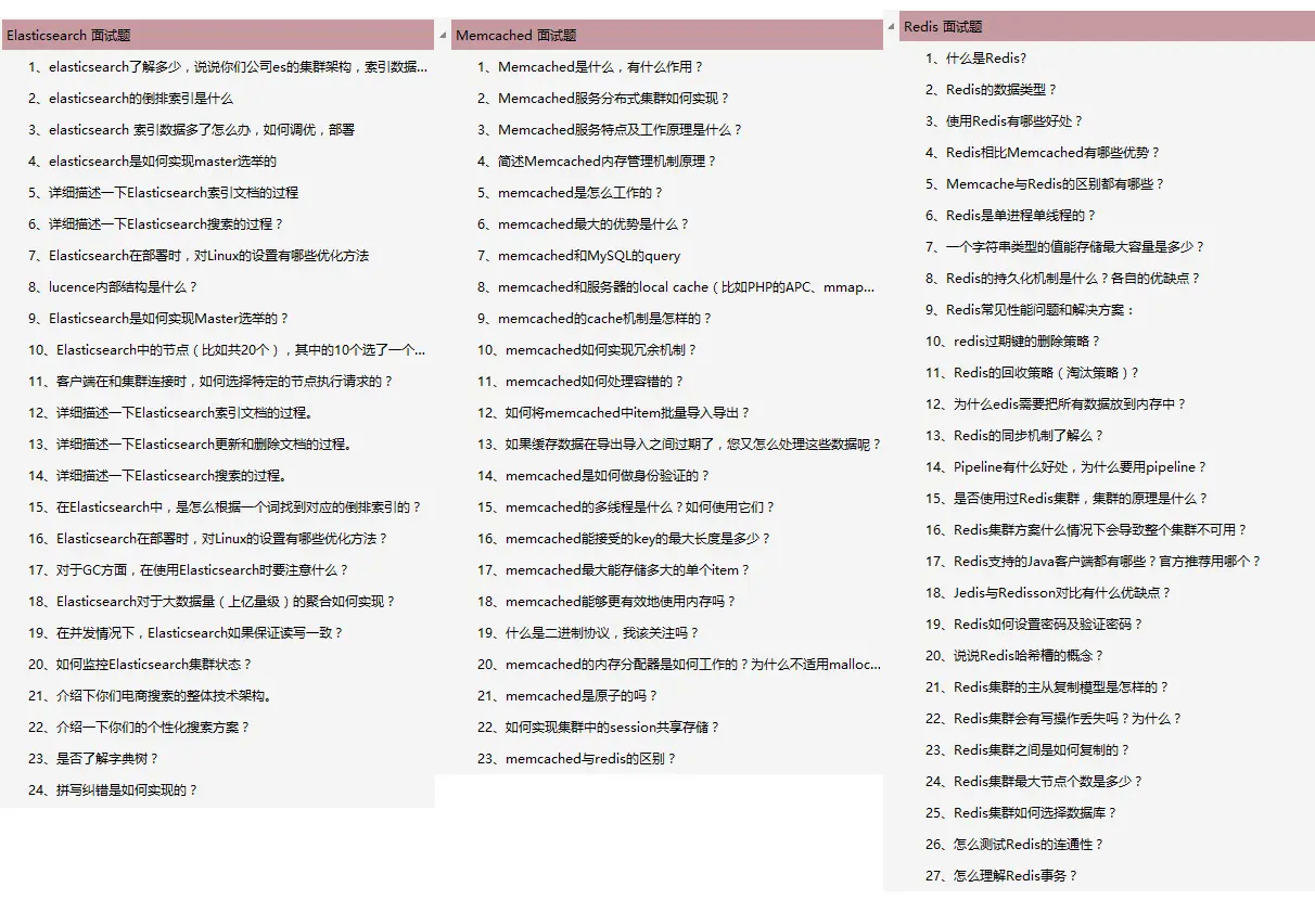 Elasticsearch 24 题 +Memcached + Redis 40题: