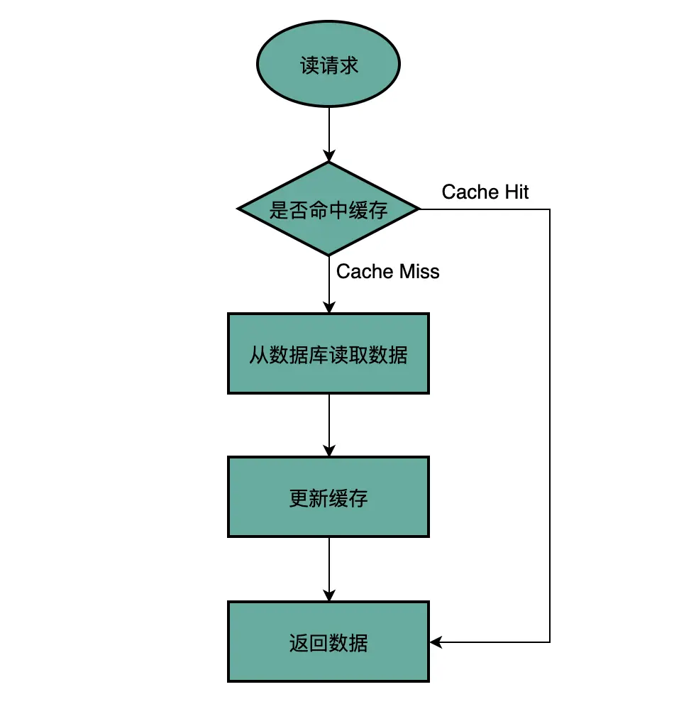 (1)读请求先查询缓存,缓存未击中,查询数据库返回数据;
