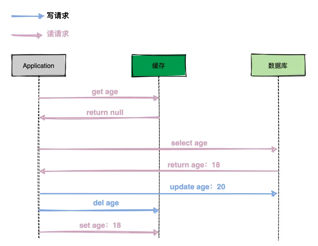 看了写请求的图之后,有些同学可能要问了:为什么要删除缓存,直接更新不就行了?这里涉及到几个坑,我们一步一步踩下去。