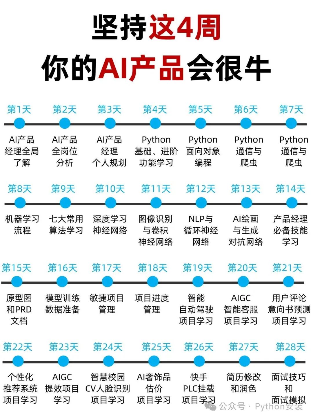 对于零基础的小白,可以从基础操作学起,逐步掌握机器学习、深度学习、AI产品项目等进阶技能。