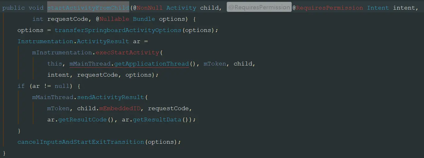 在这个execStartActivity中,可以找到关键代码: