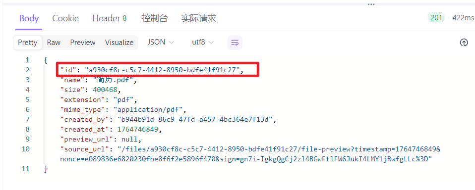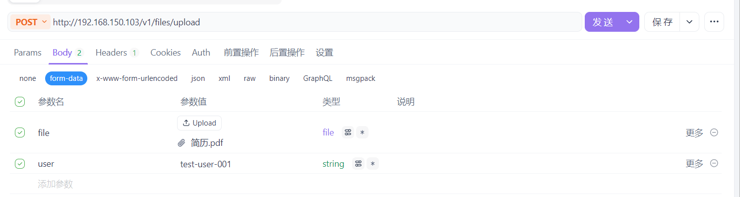 - 用户先调用 Dify 的「文件上传接口」,上传本地文件(如简历 PDF);