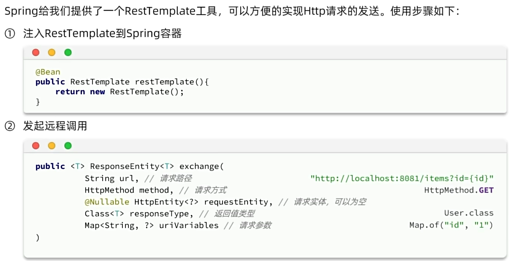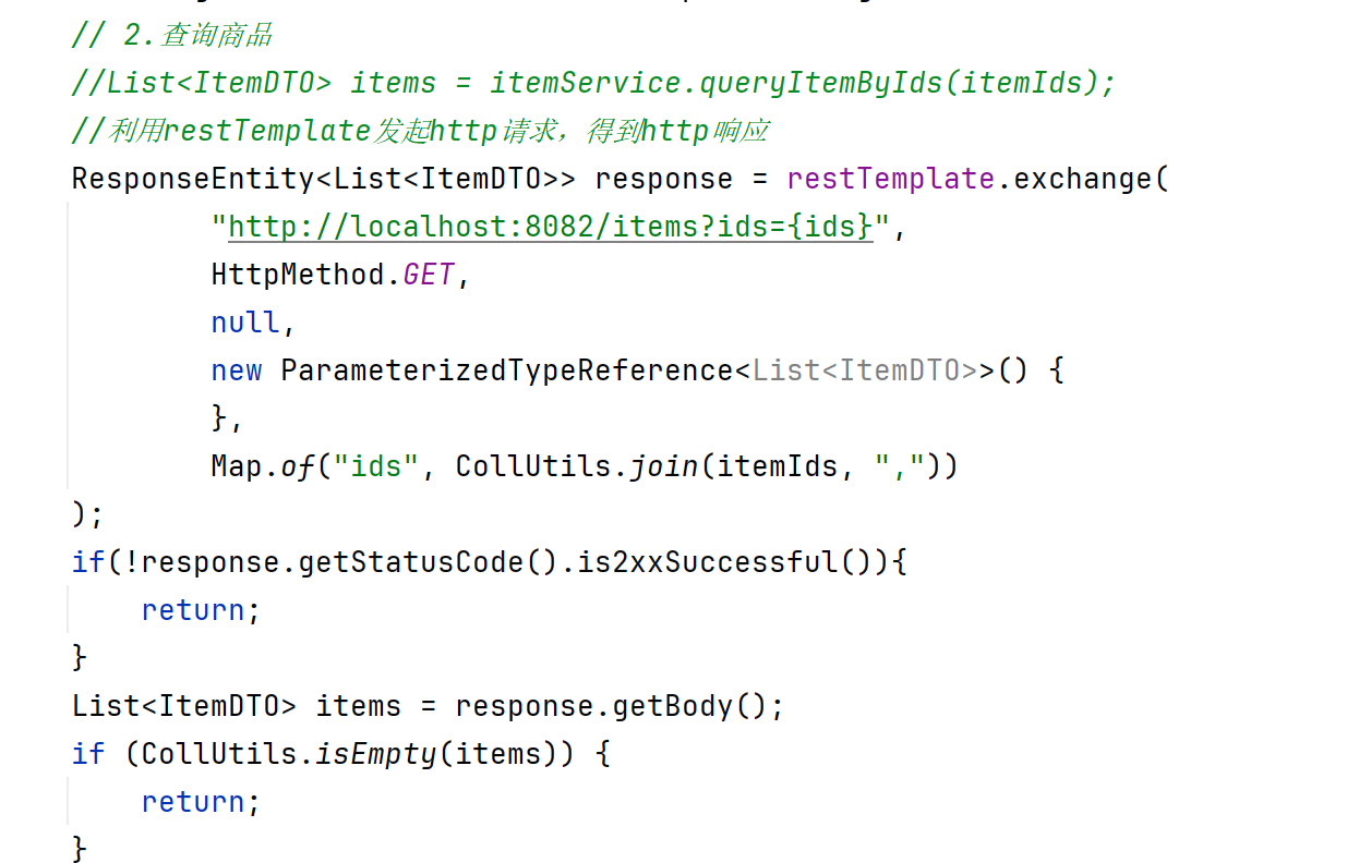 购物车服务怎么向商品服务发网络请求呢?Java在这方面就模拟了前端向后端发送http请求,因为前端是个静态页面,需要后端传递数据才可以实现各种业务,如上的问题也可以模拟前端向后端发送的请求来完成。(针对于返回值类型,其实本来应该是JSON格式的数据,但是Java会反序列化成实体class类型给你)