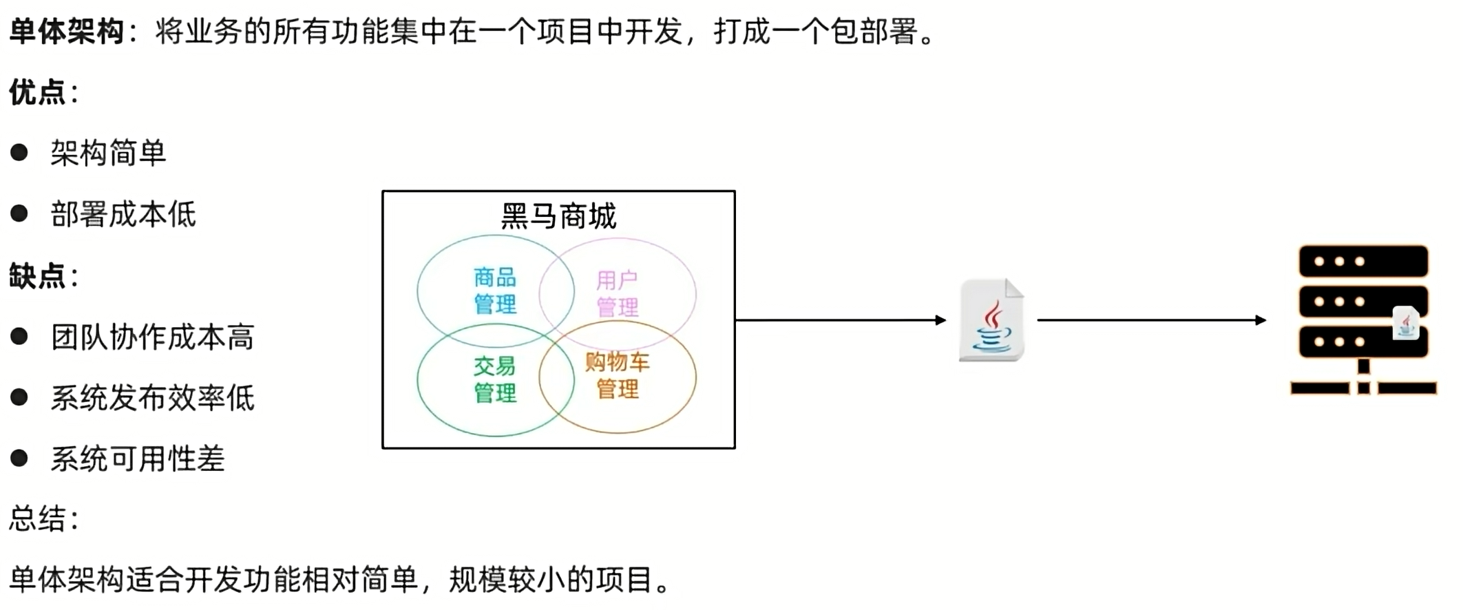 Maven聚合是,如上图,黑马商城就是一个project,底下的每个微服务就都是一个模块。如下图,每新建一个模块其实就是新建一个微服务,这种模式看起来和单体架构差不多,但是其实有区别的,如下图单体架构hm-common他是不运行的,只有hm-service是运行的。(这种模式更加方便我们去管理,这种结构比较受中小型项目的一些欢迎,所以之后我会来讲这种模式)