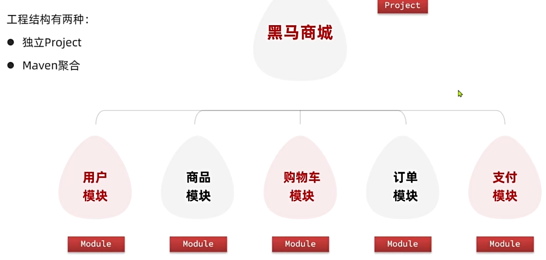 独立的project是指,地下每一个微服务(模块)就是一个project,而黑马商城hmall是一个空文件夹,文件夹里面就有这些所有的project。