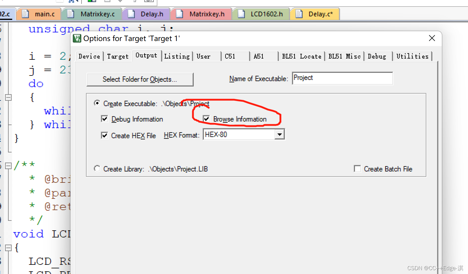 **需要将文件Browse information 将他勾选进去,不然你的程序马上就报错!!**