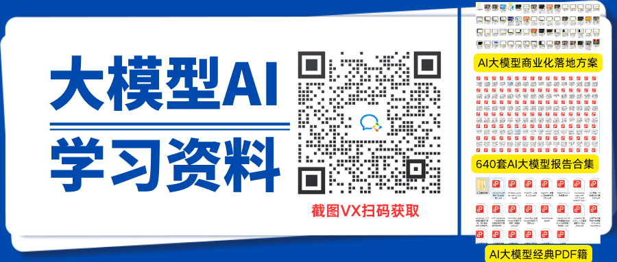 这份完整版的大模型 AI 学习资料已经上传优快云,朋友们如果需要可以微信扫描下方优快云官方认证二维码免费领取【保证100%免费】