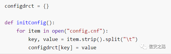 读取配置文件,将配置文件中的内容初始化到字典中:
