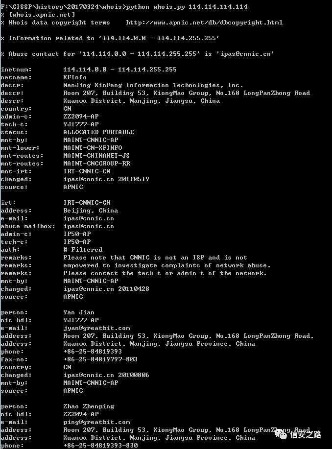 今天给大家分享几个脚本,看看如何收集全网whois信息。首先了解一下whois.py这个基本程序。