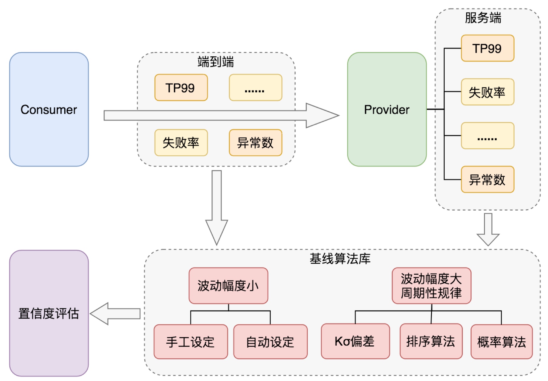 ② 当我们确认完某条链路出现了问题,在链路上越往后的节点可能是引起问题的根节点,我们会实时获取该节点更多相关监控指标来进行分析诊断,这里会融合开发人员日常排查问题的SOP,最终可能定位到是这个服务节点某些服务器的磁盘或者CPU等问题。