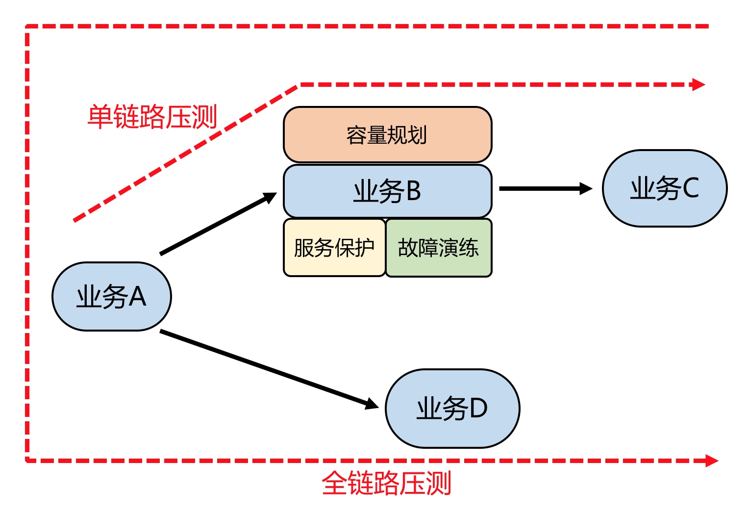 ③ 我们的代码中会有大量的降级限流开关,在服务异常时进行相应的保护操作。这些开关随着产品快速地迭代,我们并不能确定它们是否还有效。另外,我们需要较准确地进行容量规划以应对快速增长的业务量。这些都需要通过全链路压测帮我们不断地验证,并发现性能瓶颈,有效地评估服务容量。