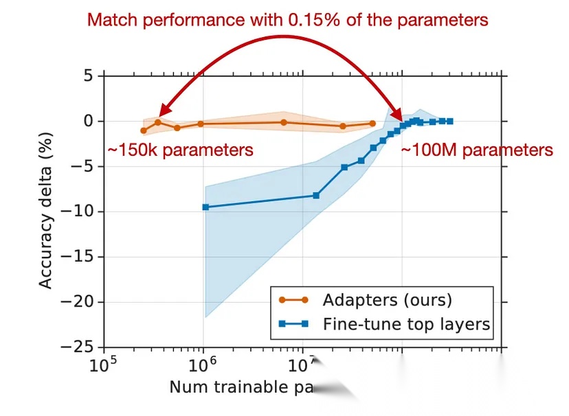 适配器是最早发布的参数高效微调技术之一。相关论文Parameter-Efficient Transfer Learning for NLP表明,我们可以在现有的Transformer架构上添加更多层,并且只对这些层进行微调,而不是对整个模型进行微调。他们发现,与完全微调相比,这种技术可以产生相似的性能。