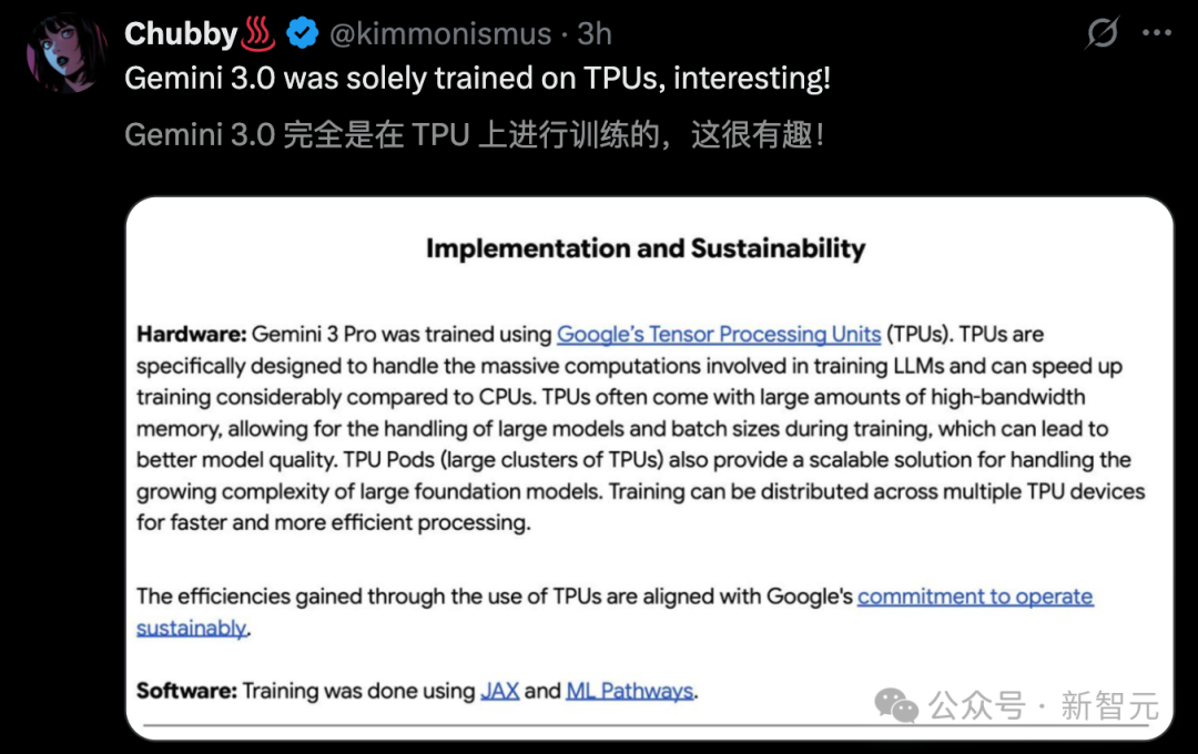 最值得一提的是,Gemini 3竟完全在谷歌TPU上完成训练。这就是谷歌的护城河。