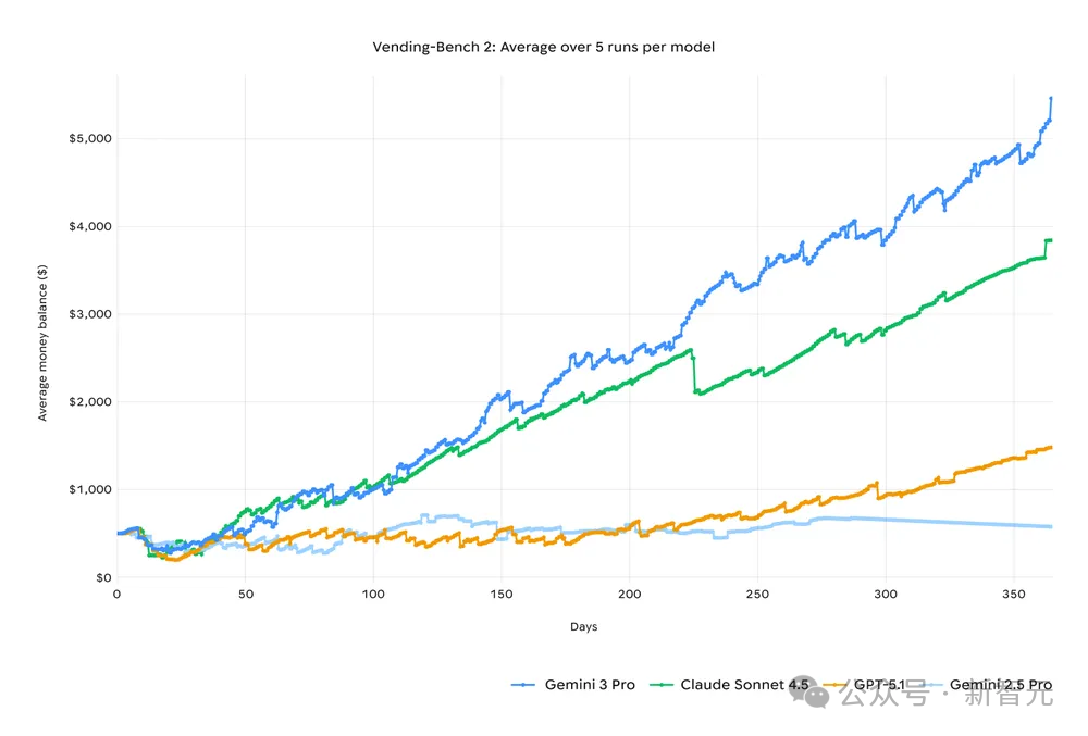 与其他前沿模型相比,Gemini 3 Pro展示了更好的长程规划能力,从而产生显著更高的回报