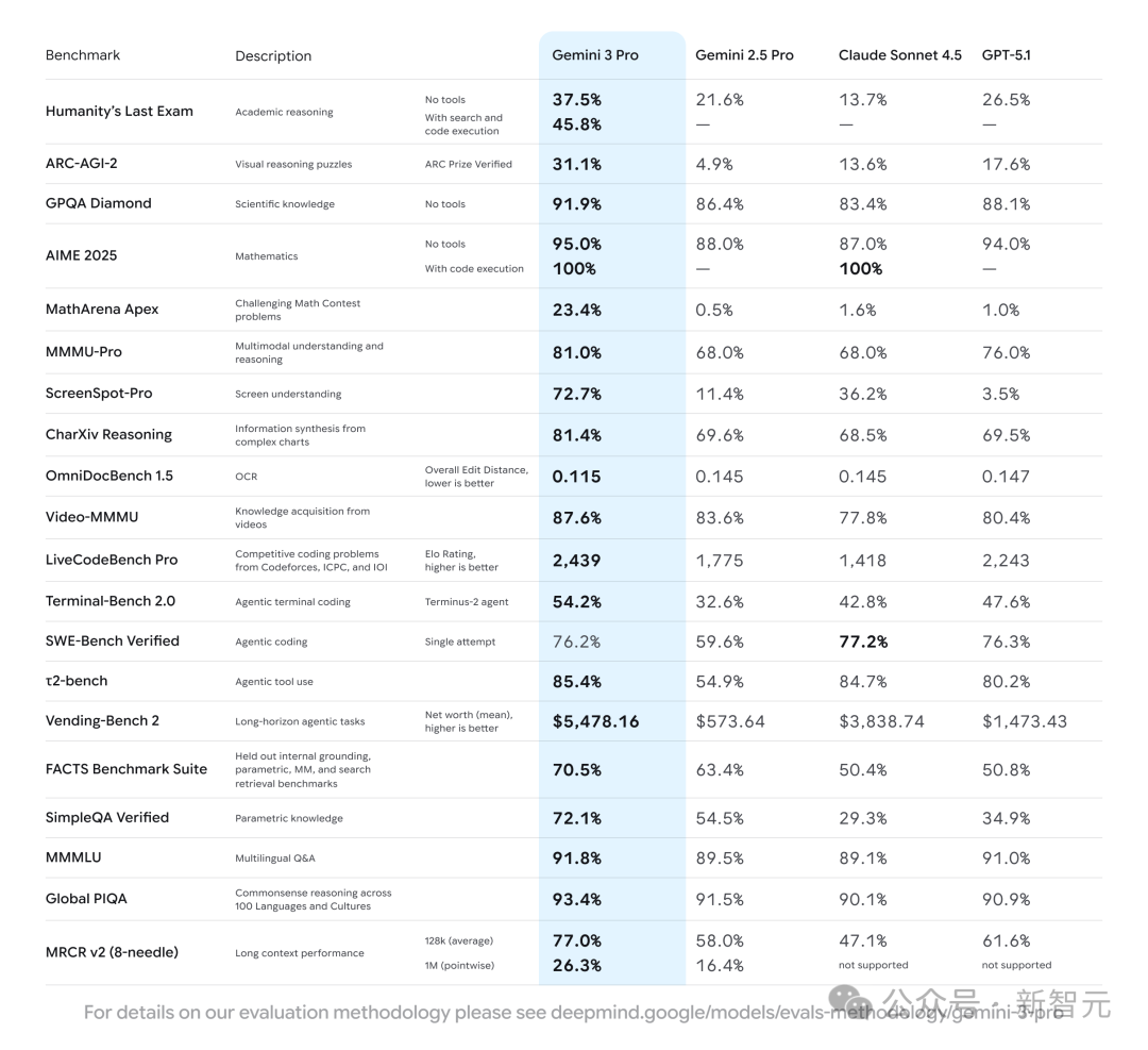 在众多基准测试中,Gemini 3 Pro一举封神——