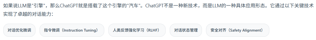 ChatGPT在LLM的基础上做出了重要贡献:它基本实现了理想LLM的接口层,让LLM适配人的习惯命令表达方式,而不是反过来让人去适配LLM。这增加了LLM的易用性和用户体验,使得人类可以更方便地与LLM进行交互。