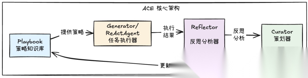 ACE 的创新在于,它建立了一个真正的智能体学习闭环: