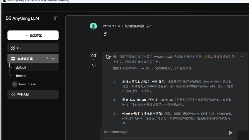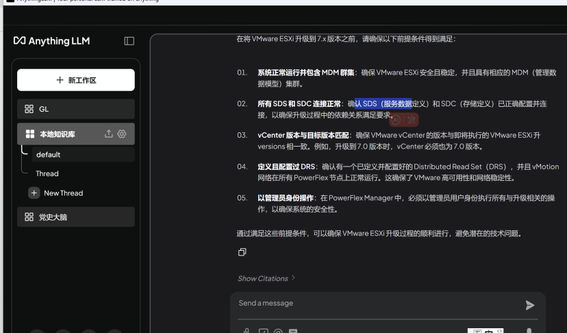 上传需要检索的文档,支持 Word、PDF、TXT 等格式(我上传了 PowerFlex 结合 VMware 的管理安装手册)