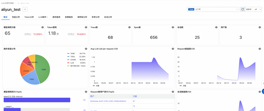 配置完毕后在 Dify 控制台或通过 Dify Api 发起几次请求,稍等1~2分钟即可登录阿里云控制台查看上报的数据。