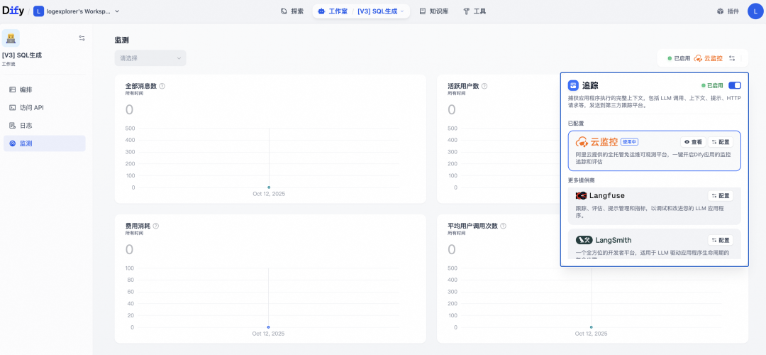 1.登录Dify控制台,并进入需要监控的Dify应用。