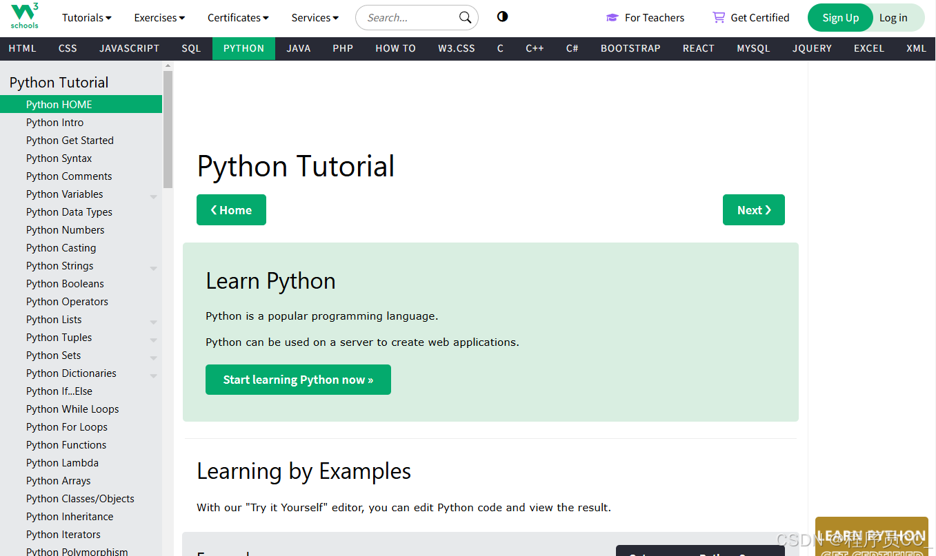 简洁明了的语法参考网站,适合快速查询Python基础语法、数据类型、文件操作等内容。每个知识点均配有示例代码和在线编辑器,方便即时测试。