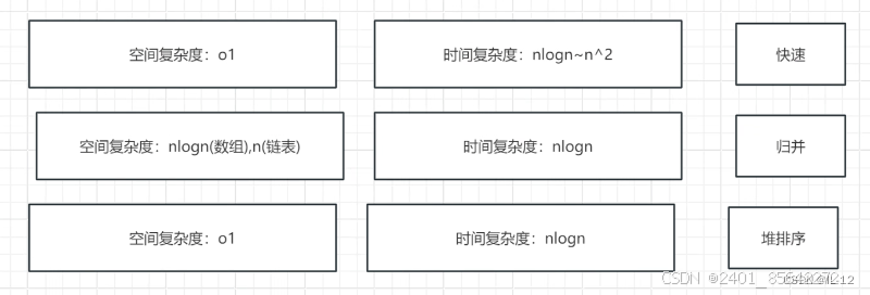 3.堆、快速排序、归并排序,比较这三种排序算法的时间复杂度和空间复杂度。(不同条件选那个)