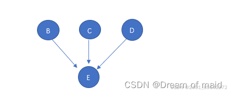 在从中选择一个没有前驱的结点,这里BCD 都可以,这里我们就选择B 同样的道理 删除B以及以B为弧尾的弧此时就是如下图