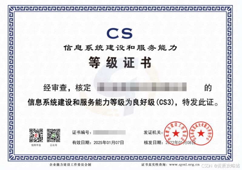 2. 获取CS2级资质满一年或具备一定系统集成资质后,才能申请CS3级。