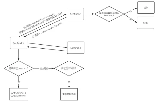 - 源Sentinel向目标Sentinel发送is-master-down-by-addr命令;
