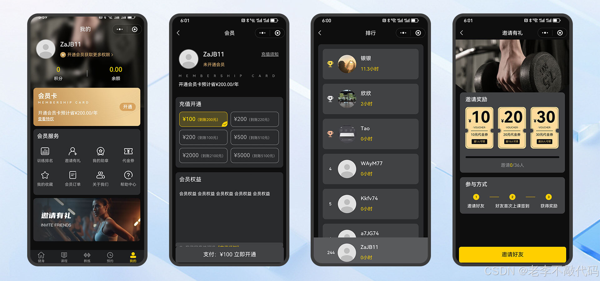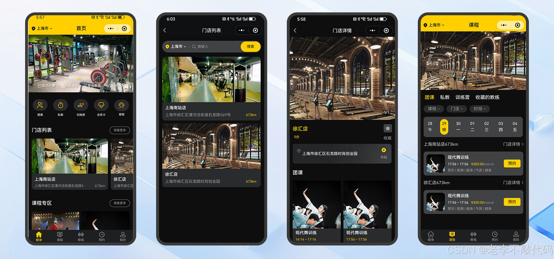 ○ 多端协同:用户端、教练端、门店端、平台端数据实时同步