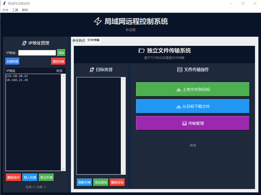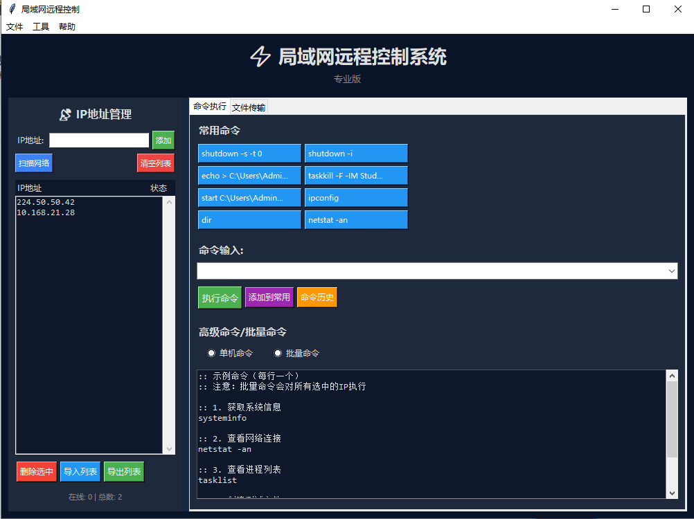 写程序时是为了上信息技术课时恶搞同学的,现在我发出的原有是让大家都可以恶搞同学。下面有下载链接,代码是python写的,源码暂时不公布。(注意:首次运行大约需要4分钟准备时间,请有耐心一点不要关了,配置文件别删,因为下次使用可以直接用,时间大约要等30秒,使用时最好全屏,其他功能也是,文件传输的话按钮不显示可以看看有没有一条绿色和红色的现,绿色开始,红色取消,其他的待您发现。)