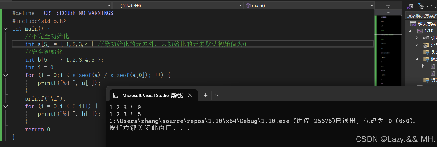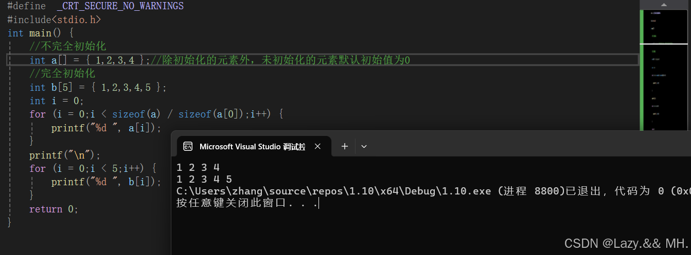 同时,在一维数组创建时,【】中的常量值可以省去,如果省去,则数组中的元素个数即为初始化的个数