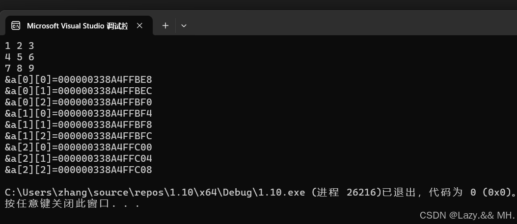 printf("&a[%d][%d]=%p\n",i,j,& a[i][j]);