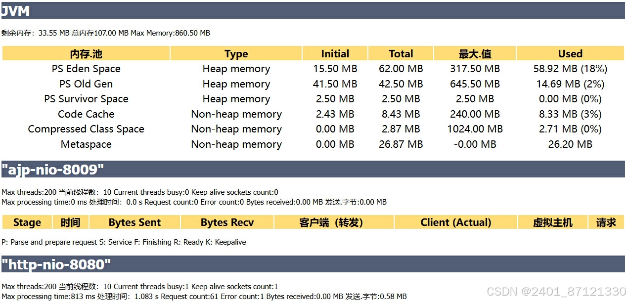 AJP:AJP是一种协议,是tomcat服务端和前端的服务器进行连接的协议,提供负载均衡和高效请求的转发