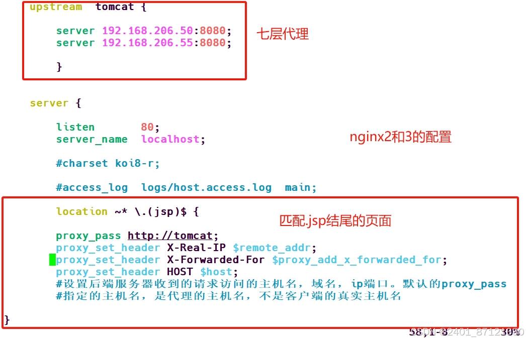 #nginx1做四层代理到nginx2和nginx3,nginx2和nginx3做七层代理到tomcat1和tomcat2