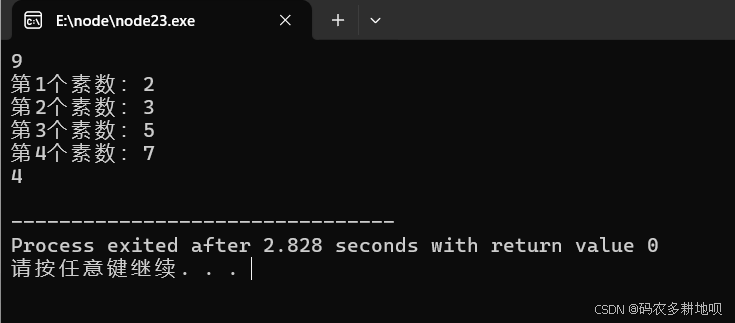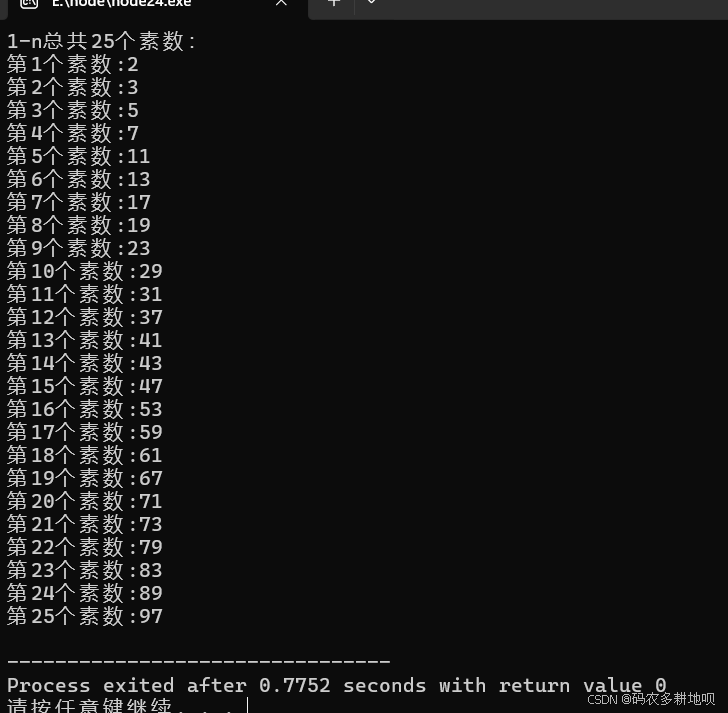 printf("第%i个素数:%d\n",i+1,prime[i]);