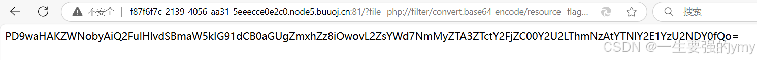 使用?file=php://input 进行尝试,发现失败,应该过滤掉了,这里我们选择把flag.php转换base64编码进行输出,因为base64编码中只包含64个可打印字符,当php遇到不可解码的字符时,会选择性的跳过,就能看到源代码。
