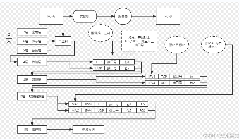 对等网【人类最早的网络】------变大---无限的传输距离 单播 无冲突 -----网桥----交换机 (工作在介质访问控制层)----识别MAC地址--------有记录则单播 无记录则泛洪(泛洪区域)----路由器---CISC思科-----网络层 【这一切的行为都是为了增大网络达到当今互联网的程度】