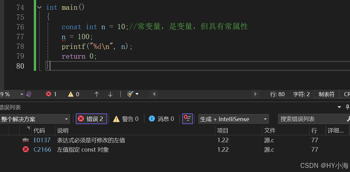 在C语言中,const修饰完是常变量,在C++中就是常量。