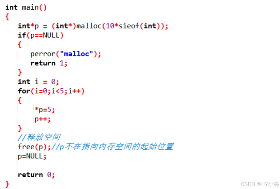 - 如果开辟失败,则返回一个 NULL指针,因此malloc的返回值一定要做检查。