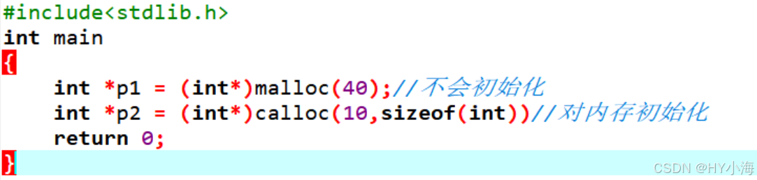 - 与函数 malloc 的区别只在于 calloc 会在返回地址之前把申请的空间的每个字节初始化为全0
