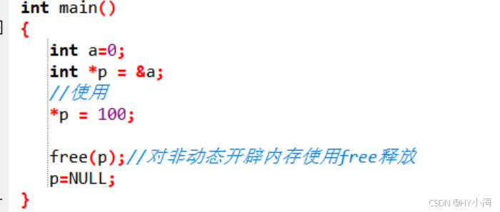 - 如果参数 ptr 指向的空间不是动态开辟的,那free函数的行为是未定义的。